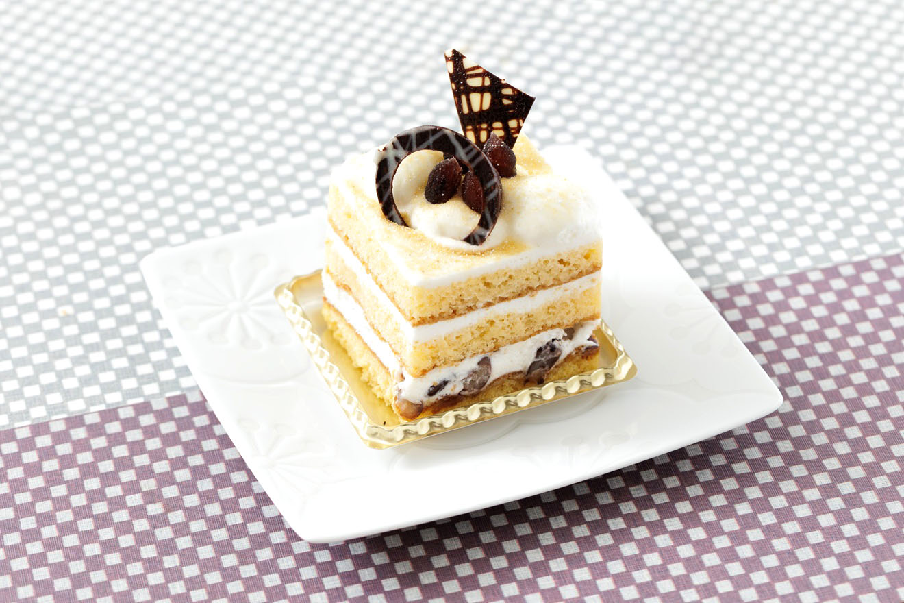香りの良い深入りのきなこと大納言小豆を贅沢に使用。島原藩御用菓子司の老舗菓子店ならではの和と洋の調和を楽しめるケーキです。